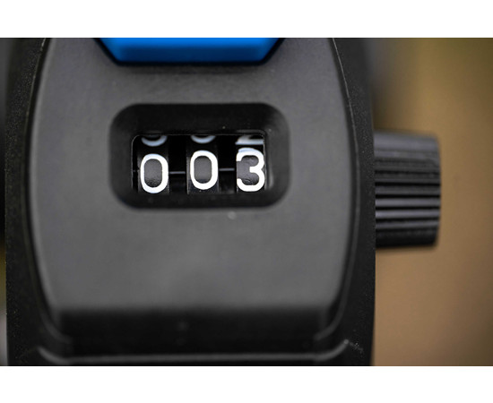 het aantal gevangen vissen wil tellen of het gewicht wil optellen om te voorkomen dat de limieten voor het bewaren van vis worden overschreden. De bediening is uiterst eenvoudig, door de grote knop aan de bovenkant in te drukken, terwijl het display kan worden gereset door aan de draaischijf aan de zijkant van het apparaat te draaien. De teller wordt geleverd met een Offbox knokkel, inclusief inzetstukken, zodat deze direct past op de poten van vrijwel alle op de markt verkrijgbare wedstrijdkisten en voetensteunen.