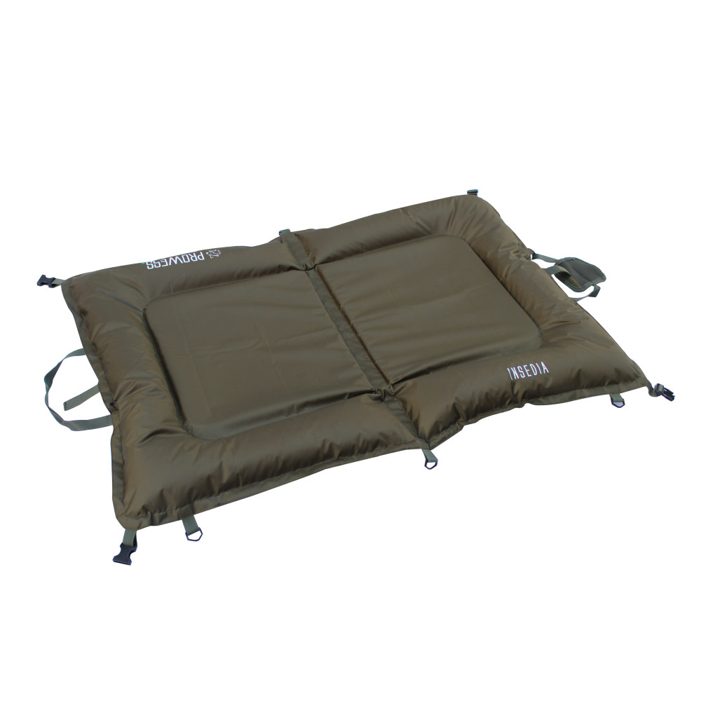 De karpermat blinkt uit in zijn eenvoud en praktisch nut. Als we klaar zijn met vissen, vouwen we hem gewoon op en dragen we hem aan de handgreep. Hierdoor is de transportmaat ook kleiner. Uitgevouwen is de mat 120x80cm.