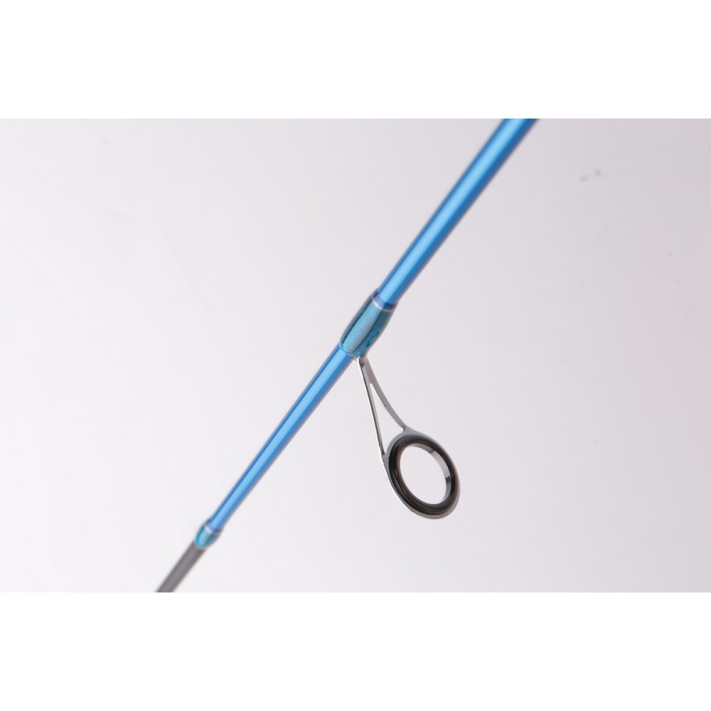 Vanwege het breed beschikbare assortiment maten, is het raadzaam om het meest nauwkeurige werpgewicht te kiezen dat past bij de doelvis, voor de meest plezierige drilervaringen.Inhoud van het pakket: 1 stuk Ryobi Num One Blue FUJI Spinhengel 240cm 4-14g