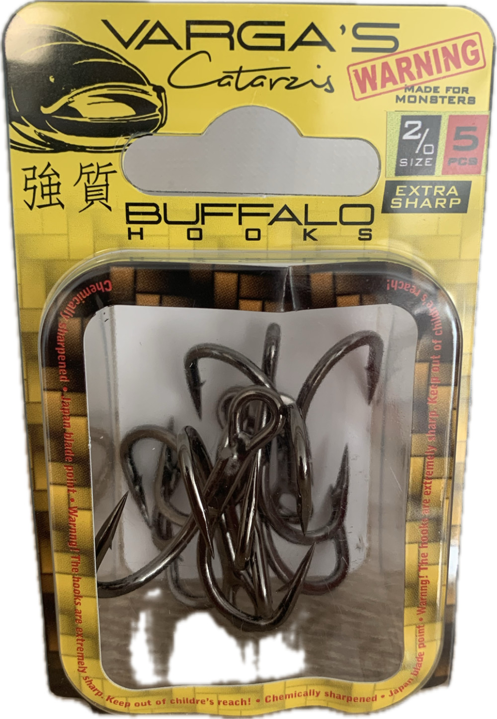 De verpakking bevat: 1 verpakking Vargas Catarzis Buffalo Hooks Oog, Met weerhaak Driehoekige Meervalhaak #2/0.